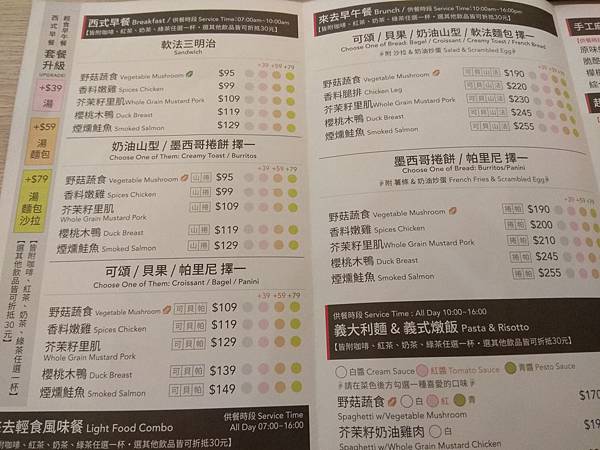 餐點從 早餐 早午餐 到 輕食與飽食的燉飯義大利麵
