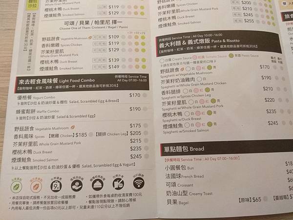 而唯一要注意!!!!!!!!!!各餐種的點餐時間(有分早餐 與早午餐時段)