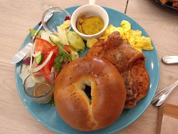 這真的是十分划算 大大的貝果跟雞腿肉 還有營養均衡的沙拉
