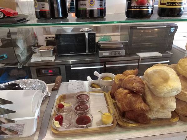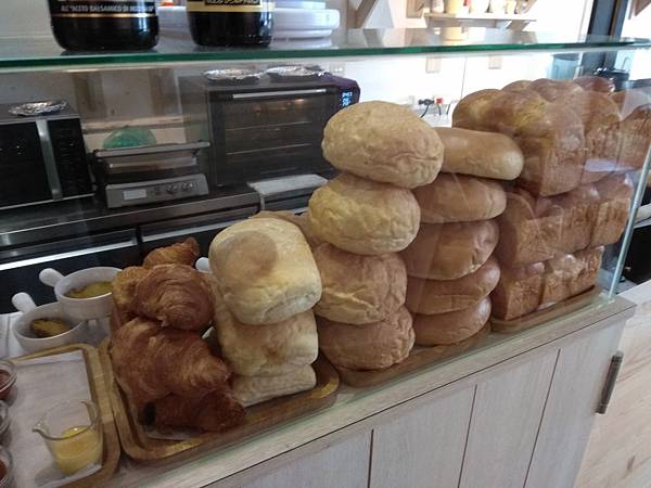 檯面上的許多種類的手工麵包實體 可以讓客人點餐時 看到方便挑選![]()